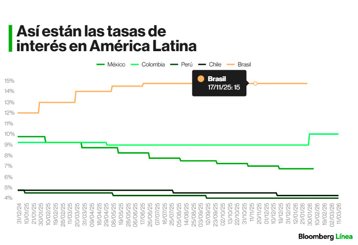 Brasil, con una tasa de referencia de 15%, combina esa dependencia con un ciclo monetario aún restrictivo. Adriana Dupita, economista de Bloomberg Economics, sugiere que el impacto del conflicto no implica necesariamente un cambio de dirección en la política del Banco Central de Brasil, aunque sí puede alterar su ritmo.