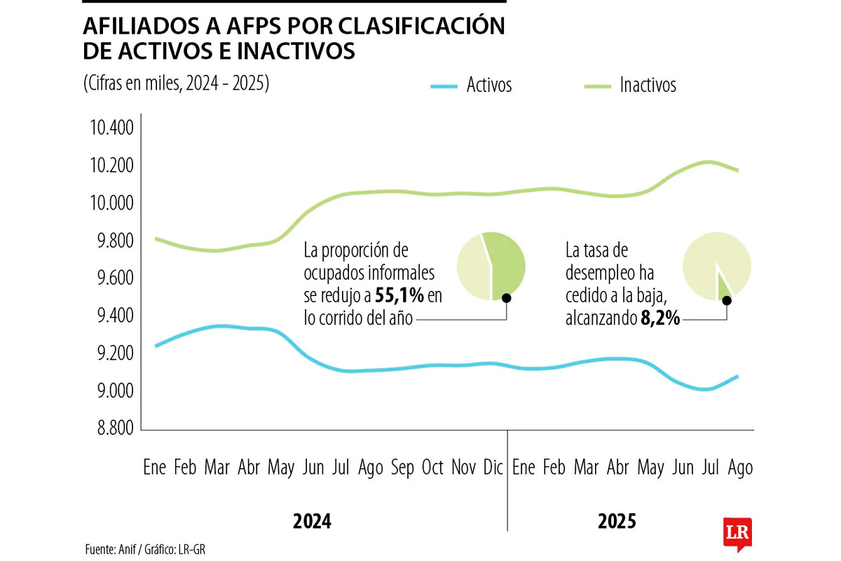 “Resulta un tanto desalentador el hecho de que hasta mayo de 2024 la diferencia entre afiliados activos e inactivos iba disminuyendo, pero en junio los segundos superaron a los primeros en más de 779.000 afiliados. Desde ese entonces hasta agosto de 2025, la brecha se ha ampliado significativamente llegando a un máximo de 1,2 millones afiliados inactivos más que activos. Más aún, para agosto de 2025, del total afiliados, 47% son activos y 53% inactivos”, explicaron.