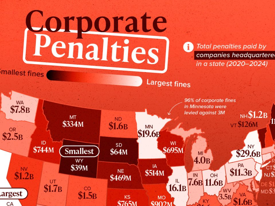Corporate Penalties Levied in Each U.S. State (2020–2024) Corporate missteps (or obvious misconduct) can be expensive, and those penalties are not spread evenly across America. The […]