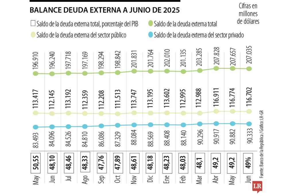 El segmento de la pública descendió a US$116.702 millones, lo que representa 27,6% del PIB, mientras que la privada se situó en poco más de US$90.330 […]