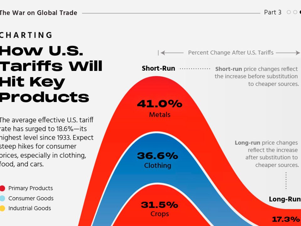 Charting How U.S. Tariffs Will Hit Key Products U.S. tariffs have climbed to an average rate of 18.6%—the highest since 1933. But what does this mean […]