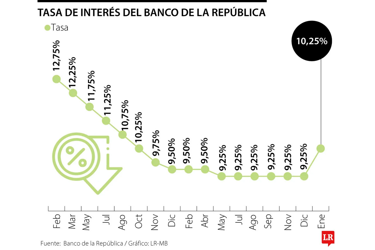 #Atento | El Banco de la República ajustó en 100 puntos básicos la tasa de interés. Desde febrero se ubicará en 10,25% pic.twitter.com/6PjPKWfSWA