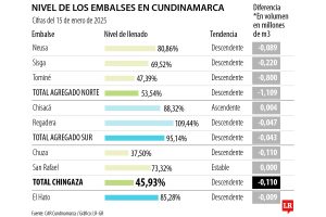 Aunque el nivel del embalse de San Rafael se mantuvo estable en 73,32%, el nivel de llenado del embalse de Chuza bajó hasta 37,5% El reporte