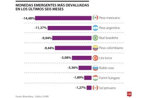 En seis meses, la moneda emergente más devaluada es la de México, con -14,48%, seguida por el peso argentino, con -11,37% Entre los motivos internacionales del