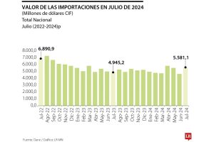 En julio de 2024, las importaciones alcanzaron US$5.581,1 millones, lo que refleja un crecimiento del 12,9% en comparación con el mismo mes de 2023. El sector de