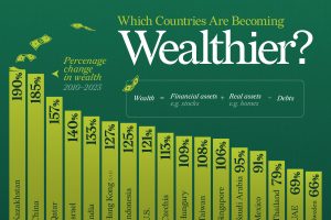 Which Countries Are Becoming Wealthier? In this graphic, we rank 34 countries by their percentage change in wealth from 2010 to 2023. Figures were sourced from