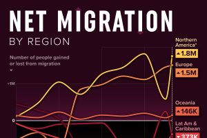 Net Migration: Which Regions are Gaining or Losing People? This graphic shows the flow of people globally by visualizing net migration by region, from 1950 to