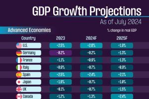 GDP Growth Projections for 2024-2025 In this graphic, we summarize the latest GDP growth projections from the International Monetary Fund (IMF), which are as of July
