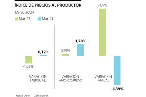 De acuerdo con los cálculos del Dane, el IPP registró una variación positiva de 1,78% entre los tres primeros meses de 2024 El Índice de Precios
