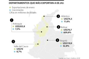En enero de este año, las dos regiones sumaron US$323,7 millones de las ventas totales de Colombia hacia EE.UU. según el Dane. De acuerdo con cifras