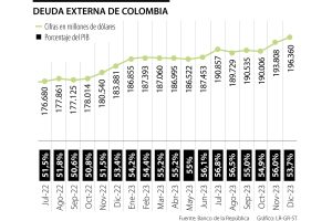 Según datos del Banco de la República, la deuda se ubica a niveles inferiores a noviembre, con caída en la deuda pública y privada. El Banco