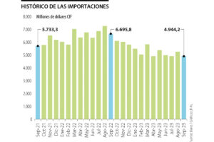 En el comparativo anual las importaciones sumaron US$4.944,2 millones CIF cuando en 2022 alcanzaron los US$6.695,8 millones. Las importaciones de Colombia cayeron 26,2% anual en septiembre,