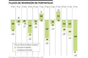 Con la dinámica de salida que se ha venido presentando, para la tercera semana de septiembre ya habían salido US$937 millones. Ante el panorama de ralentización