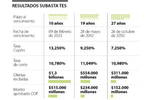 La ofertas recibidas en la subasta llegaron incluso a $2,1 billones lo que representa un aumento del monto convocado por el Ministerio considerable. El Ministerio de Hacienda realizó