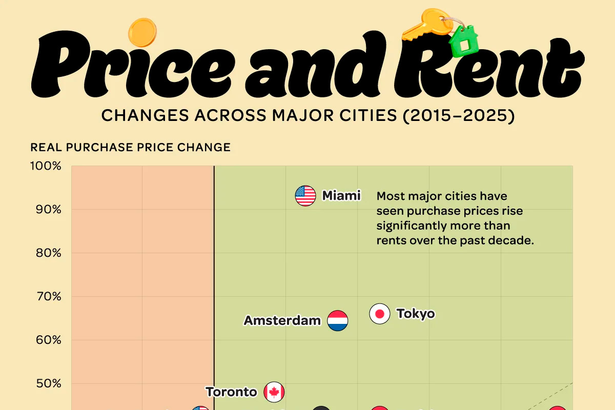 Charted: Home and Rent Price Changes in Global Cities (2015-2025)