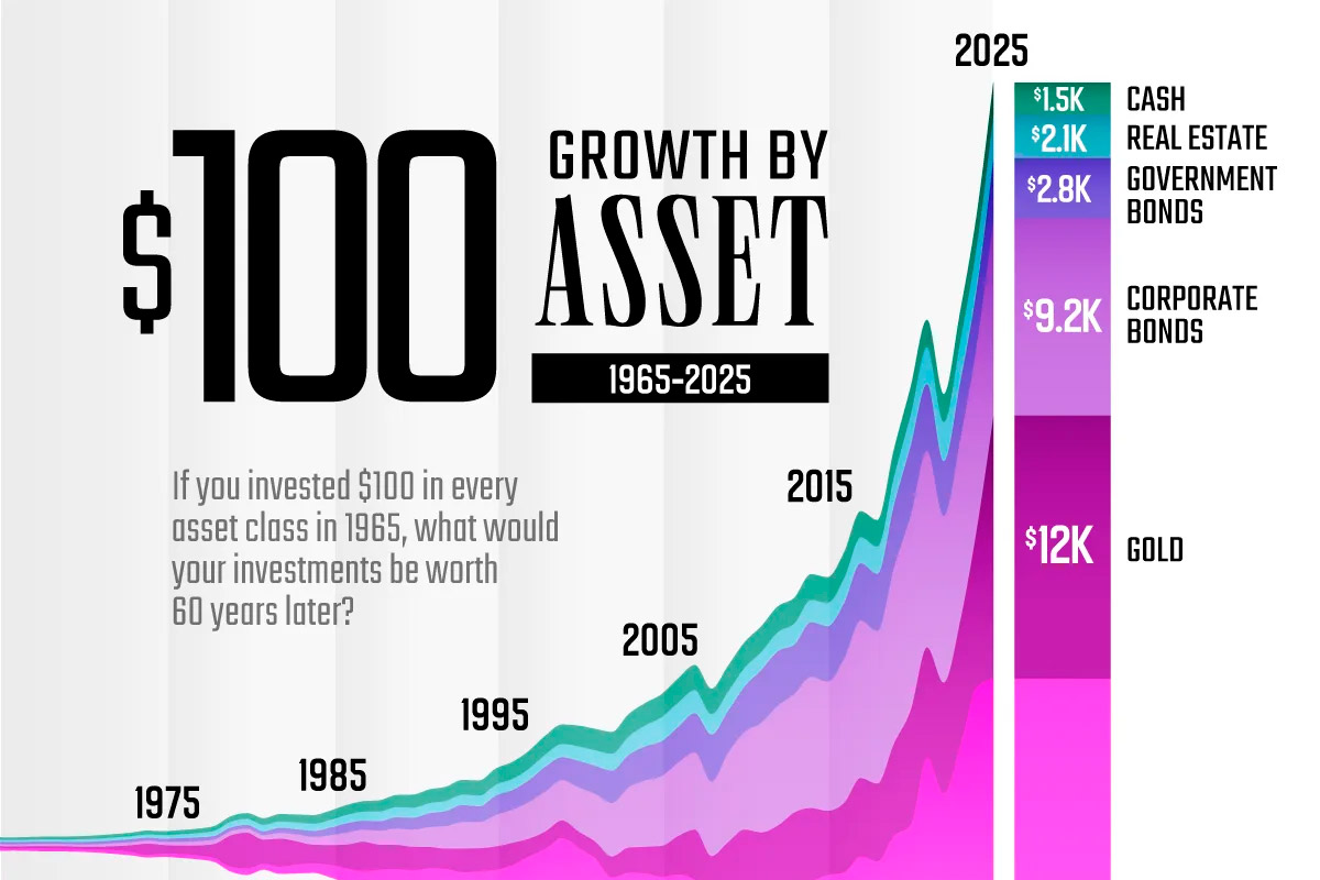 Información extraída de: https://www.visualcapitalist.com/charted-the-growth-of-100-by-asset-class-1965-2025/