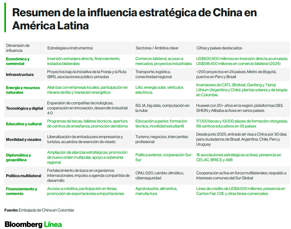Información extraída de: https://www.bloomberglinea.com/latinoamerica/china-acelera-su-influencia-en-latinoamerica-mas-que-en-cualquier-otra-region-emergente/