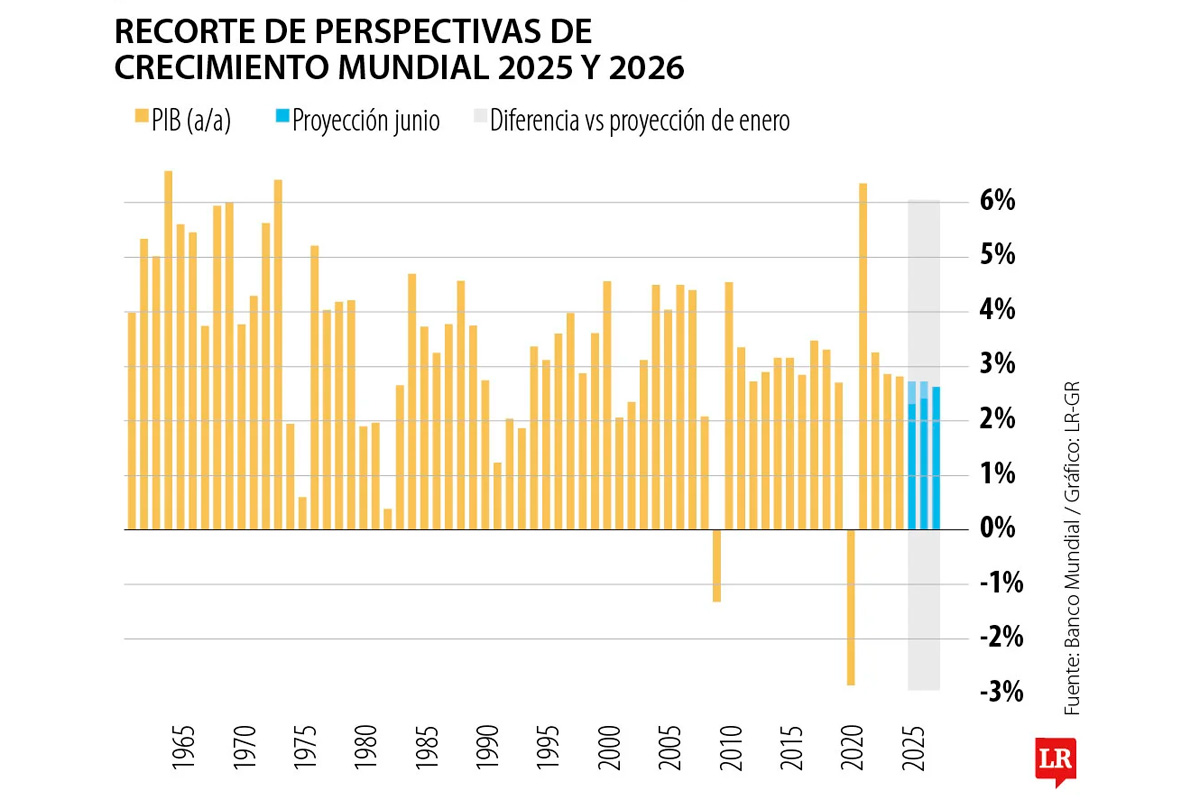 El Banco Mundial redujo el martes su proyección de crecimiento mundial para este año y advirtió que la década de 2020 va camino de registrar el desempeño más débil desde la llegada del hombre a la Luna, debido a las tensiones comerciales y la incertidumbre política. Para el caso de Colombia, se espera que haya un crecimiento de 2,5% en 2025 y 2,7% para 2026.