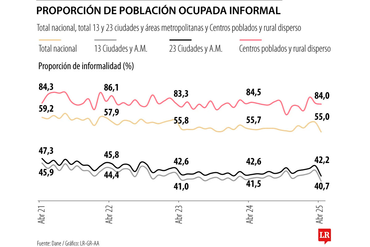 Los últimos datos de empleo en Colombia muestran que es el Estado quien ha logrado, a través de sus contratos a término fijo, bajar el número de personas sin trabajo, a menos de 8,8% anual, es decir, menos de 2,3 millones de desempleados y que la informalidad supera 55%, una de las cifras más altas de la historia reciente.