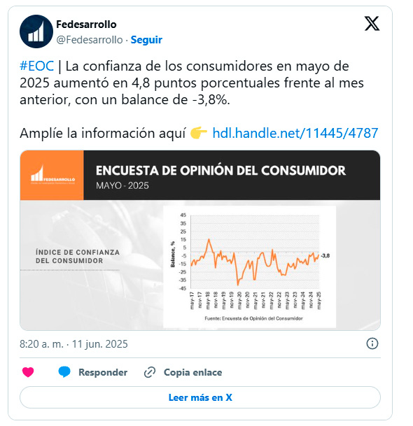 Información extraída de: https://www.larepublica.co/economia/el-indice-de-confianza-del-consumidor-aumento-y-se-ubico-en-3-8-en-mayo-2025-4155207