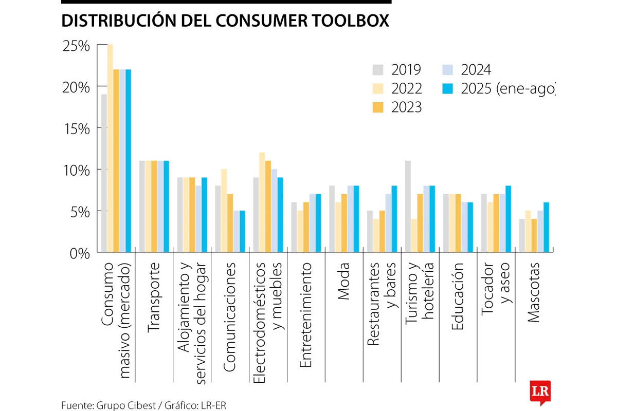 Una de las tendencias más relevantes es la priorización de bienes y servicios esenciales, con el consumo masivo, transporte y alojamiento liderando el informe. “En 2025, el gasto de los hogares se concentra en bienes y servicios esenciales, donde sobresalen consumo masivo, transporte y alojamiento y servicios del hogar como las categorías con mayor participación”, señaló el estudio.