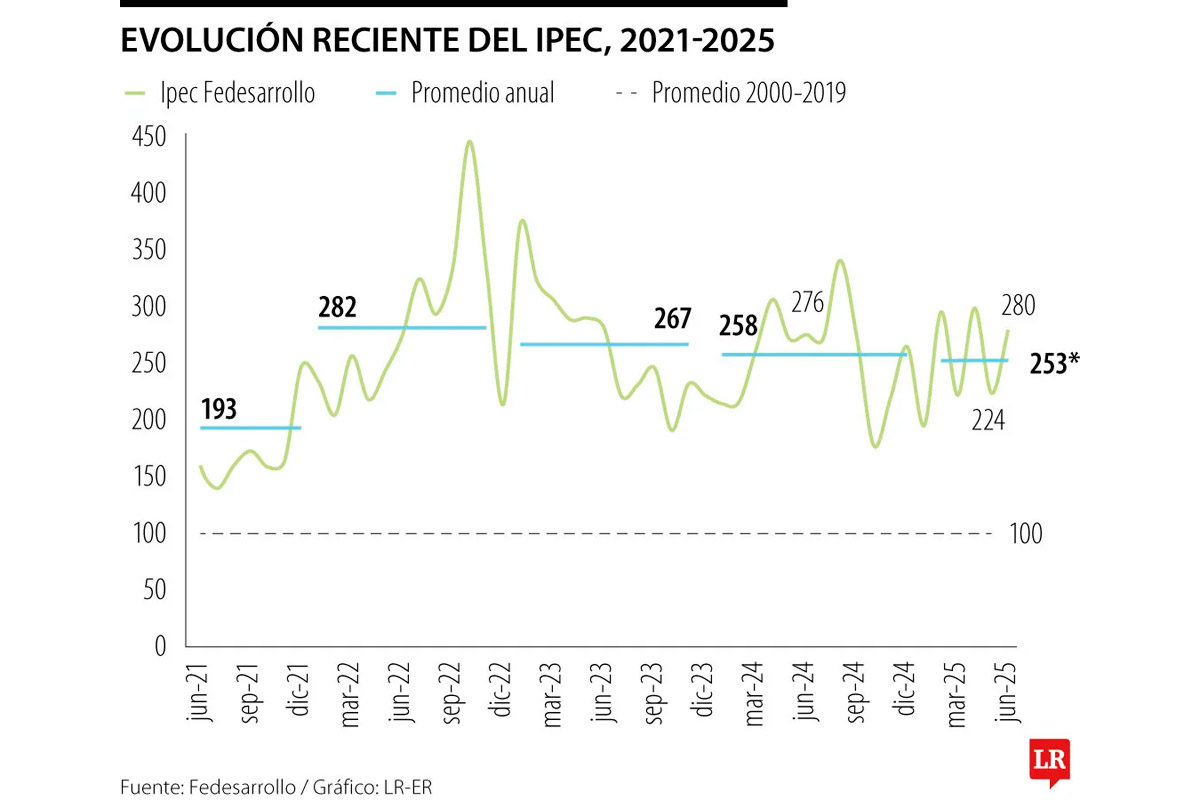 Fedesarrollo señaló que el indicador tuvo un repunte mensual de 56 puntos. No obstante, el promedio se mantiene por debajo de lo registrado en 2024