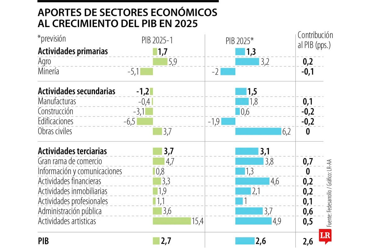 Información extraída de: https://www.larepublica.co/economia/las-actividades-artisticas-y-financieras-y-el-comercio-arrastrarian-pib-a-2-6-en-2025-4187958