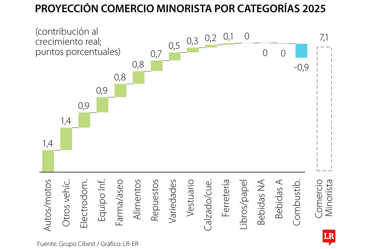 “Estos resultados no solo superan nuestras expectativas iniciales, sino que también revierten buena parte de las contracciones observadas en los primeros meses de 2023 y 2024. En una economía donde el consumo es el principal motor, el comercio minorista ha apostado por vender más, aunque sea a menor precio. Las estrategias de descuento y contención de precios explicarían el repunte del sector en 2025”, señaló Bancolombia en el informe.