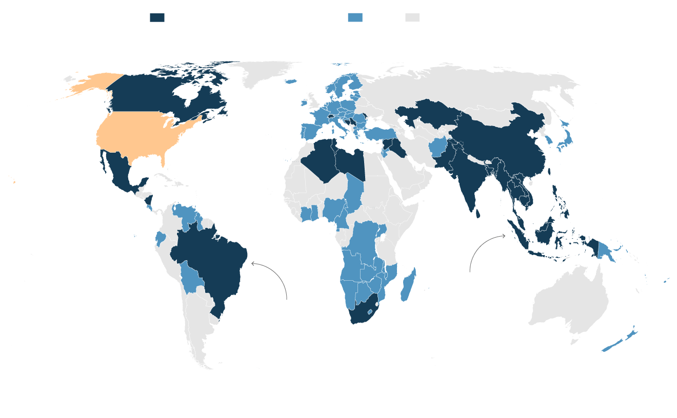 Otros 21 países también enfrentan gravámenes superiores al 15 %. Esto incluye varios de los que Estados Unidos depende en gran medida para diversos bienes, como Vietnam (20 %), India (25 %), Taiwán (20 %) y Tailandia (19 %).