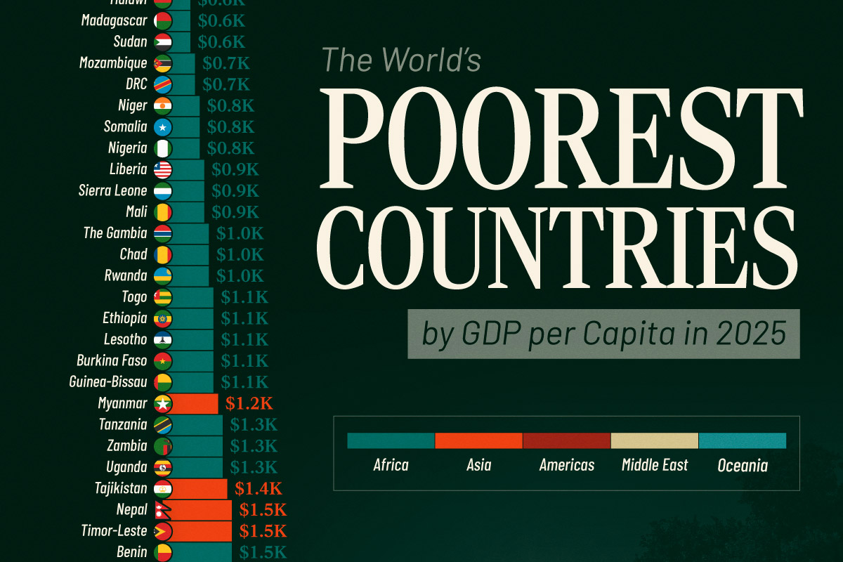 Información extraída de: https://www.visualcapitalist.com/ranked-the-50-poorest-countries-by-gdp-per-capita-in-2025/