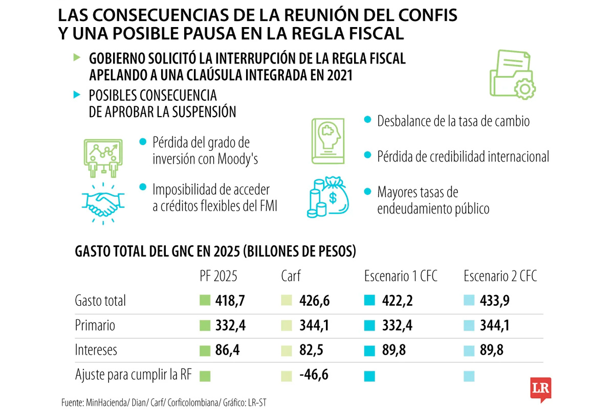 Información extraída de: https://www.larepublica.co/economia/suspension-de-la-regla-fiscal-elevaria-deficit-presupuestal-hasta-7-4-del-pib-en-2025-4153510